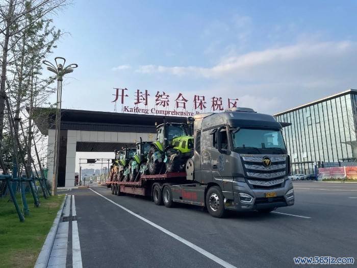 卡车载着中联重科拖拉机驶出开封综保区发往共建“一带一起”国度。王寅龙摄